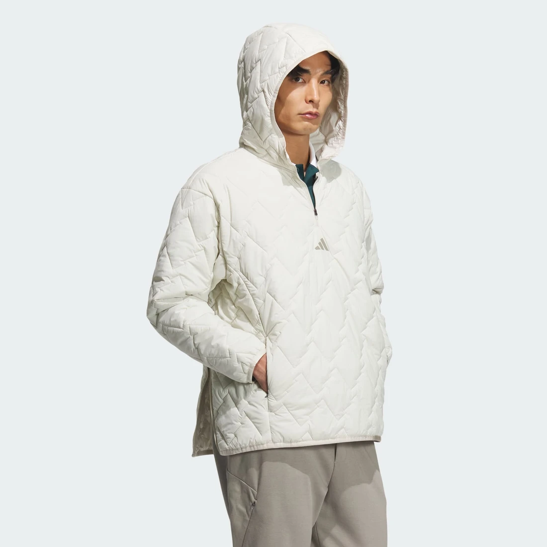아디다스의 1/4 지퍼 패디드 풀오버 롱 슬리브는 경량 보온성과 편안한 착용감이 결합되어 경기 중에도 움직임이 자유롭습니다.<br>루즈 핏으로 모든 스윙을 완벽하게 지원하며, 립스톱 원단의 통기성이 우수하여 날씨 변화에도 구애받지 않습니다. 패디드 단열재가 무게감 없이 은은하게 따뜻한 느낌을 더합니다. 쿼터 지퍼 넥라인으로 이동 중에도 다양하게 레이어드 할 수 있습니다.<br><br>첫 티부터 클럽 하우스까지, 이 풀오버는 골프 코스와 그 너머까지 차분한 집중력과 세련된 멋을 선사합니다..