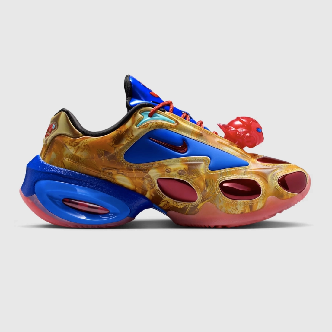 나이키와 WINDOWSEN이 손잡고 90년대 레이브 씬에서 바로 런웨이로 걸어 나온 듯한 슈즈를 선보입니다. WINDOWSEN이 재해석한 에어맥스 뮤즈는 메탈릭 실버와 레이지 그린 같은 개성 넘치는 컬러를 합성 소재와 직물 소재의 믹스로 표현해 현실을 넘어선 분위기를 담아냈습니다. 렌티큘러 프린트가 더해져 보는 각도에 따라 형태가 변해 보이고, 아웃솔과 듀브레에 새겨진 외계인 디테일은 우주적인 감각을 세련되게 연출합니다.<br><br>WINDOWSEN의 창립자이자 디자이너인 센센 리는 ‘쿠튀르와 클럽웨어의 만남’이라는 독창적 미학으로 잘 알려져 있습니다. 연극적인 요소와 아방가르드 디자인을 하이패션과 결합한 센센 리는 기존의 규범이 지워지고 전통이 뒤틀리는 꿈의 나라를 그려냅니다.<br>