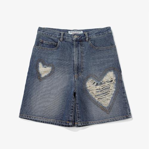 영문 상품명 - THE MUSEUM VISITOR X FILA HEART DESTROYED DENIM SHORTS