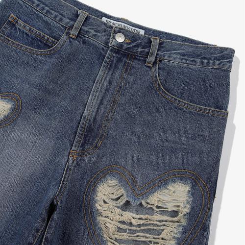 더뮤지엄비지터 x 휠라 하트 디스트로이드 데님 쇼츠